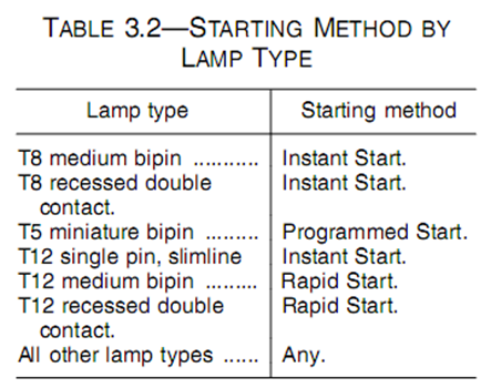 3. 规定测试中使用的镇流器的启动方法和镇流器因子。非一体式灯,请按照以下优先顺序进行测试:如果制造商提供的公开兼容性列表中的所有镇流器都使用相同的启动方法,则选择具有该启动方法的镇流器来测试;如果制造商提供的公开兼容性列表中的镇流器使用多个镇流器因子,则根据Table 3.1 中的不同类型灯选择镇流器因子(如果兼容性列表中的镇流器中未包含表中的镇流器因子,则制造商应选择镇流器因子最接近Table 3.1中的镇流器);如果制造商提供的公开兼容性列表中的镇流器使用多种启动方法,则根据Table 3.2 中的灯类型来选择对应启动方法的镇流器(如果兼容性列表中的镇流器中未包含Table 3.2中的启动方法,则制造商可以另外选择启动方法);如果上面条件无法满足,且灯仅在低频,预热启动的镇流器下工作,则在制造商宣称的电压和电流下测试。