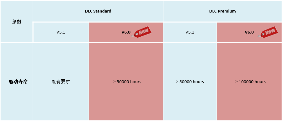 • 标准档驱动寿命要求50000小时,高级档100000小时