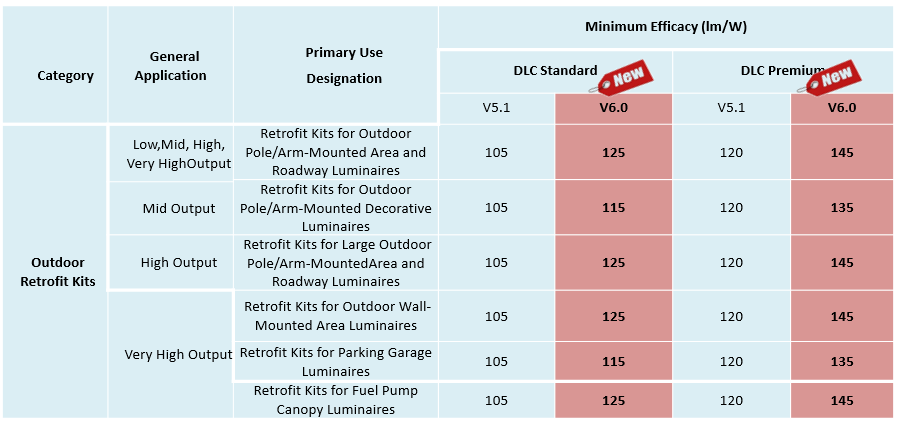 • 光效阈值提升,并引入按主要用途指定 (PUD) 划分的户外功效阈值,而不是对所有户外产品使用单一的通用光效阈值