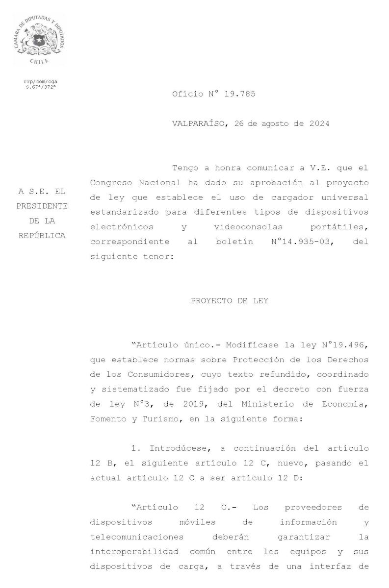 2024年8月26日,智利众议院批准了一项法案,为手机、平板电脑和便携式游戏机等各种设备建立通用标准充电器。