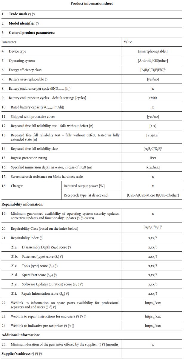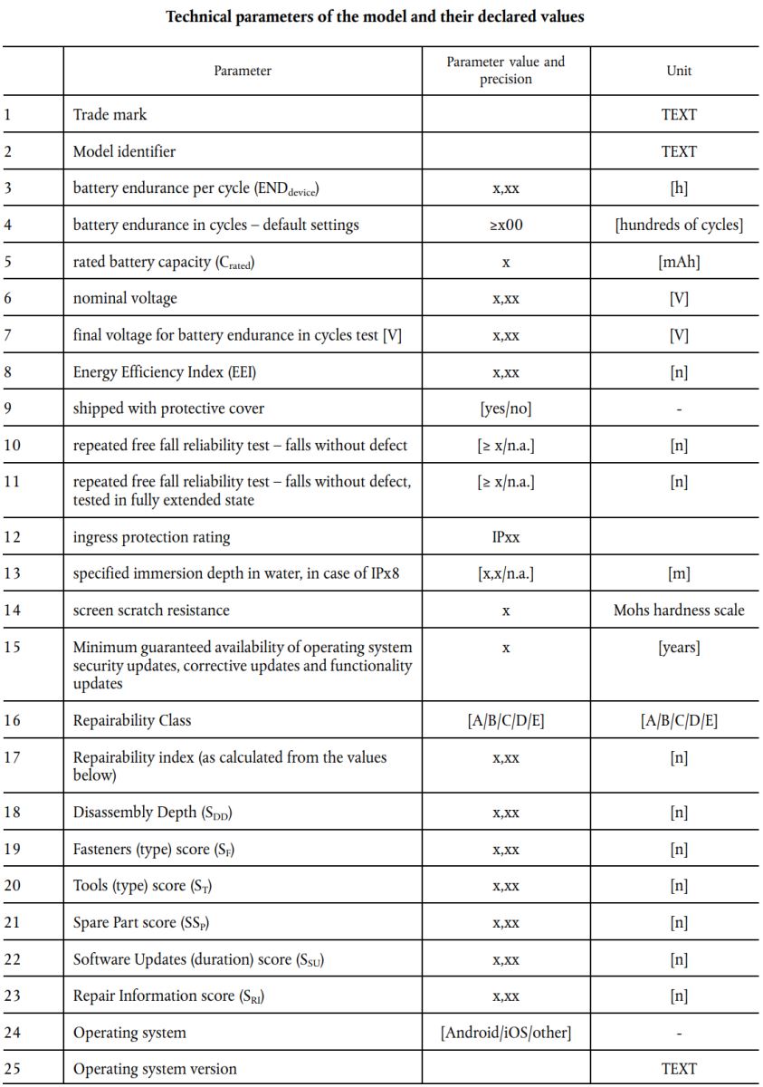能效标签法规(EU) 2023/1669涵盖产品范围:智能手机和平板。