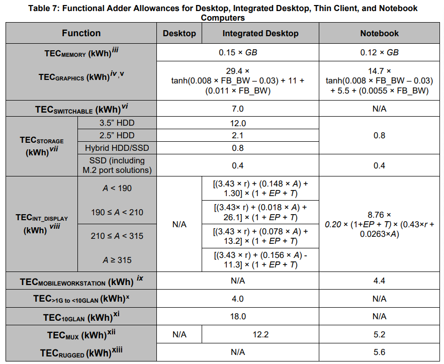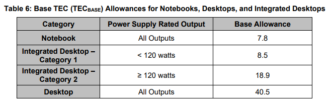 变更四:简化笔记本电脑,一体机,台式电脑的TEC基础容许值。