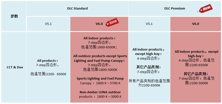 • 通过提高最大CCT限值和引入低CCT及琥珀色产品资格减轻光污染