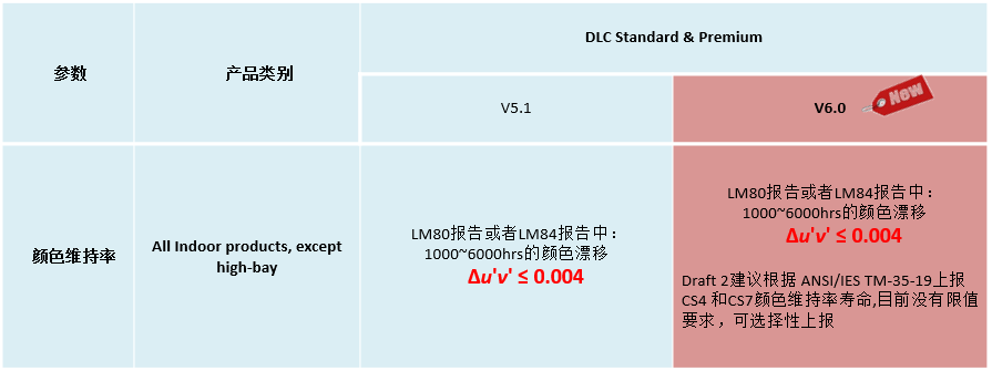 • 对琥珀色LED定义更新以满足灯具适用性要求