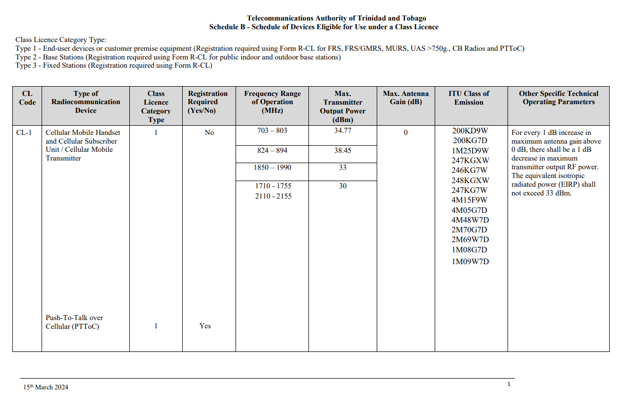 https://tatt.org.tt/wp-content/uploads/2024/03/Schedule-B_Schedule-of-Devices-Eligible-for-Use-under-a-Class-Licence-15th-March-2024.pdf
