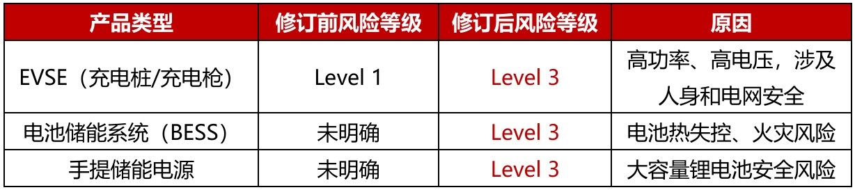 • 此前EVSE属于Level 1,仅需自我声明合规;